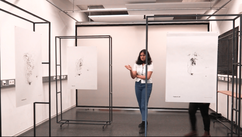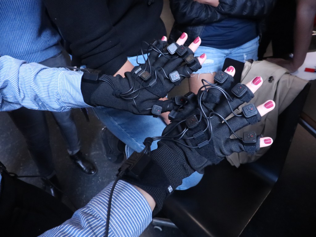 Digital Rituals is a collaboration between cultural, technological, and spiritual worlds created in three days during an international residency at the Willem DeKooning Academy in Rotterdam, NL. Nine art students from MICA in Baltimore, MD and the Willem DeKooning Academy used motion-capture gloves to turn hand movements on cultural gestures, unlocking phones, and prayer/blessing into data. From the collected data of hand pathways, we created animations, plotter drawings, and trained an AI to distinguish between the three categories (Prayer, Passwords and Vernacular). All components were displayed in an interactive installation at Willem DeKooning Academy in October 2018.
