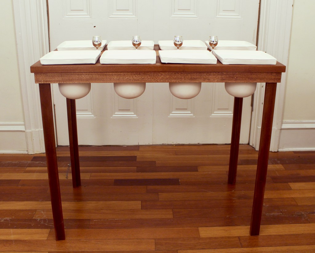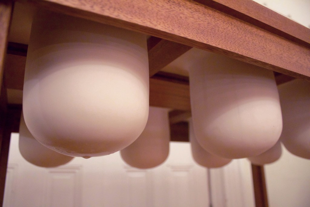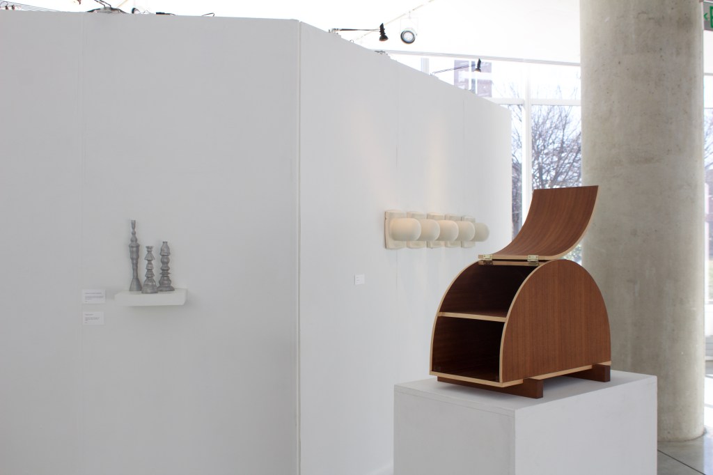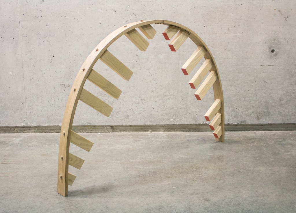 “Oyyo” is a Proto Indo European word that is believed to be a linguistic origin for the English word “egg”. Eggs are considered one of the simplest and pure shapes found in nature and the collection of sculptures in this show embody those characteristics through curvilinear forms, natural materials, fragility, and structure. Enclosed shapes act like shells to house inner spaces and moveable components have the potential to change form completely. Each piece is an interplay of interior and exterior space to create unassuming, minimal and familiar pieces.